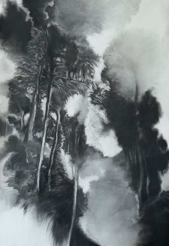 Ce qui frappe, lorsque l’on découvre le travail de Claude Como, c’est son désir de trier, lister, répertorier. Depuis 30 ans, en effet, Claude Como travaille le plus souvent par séries : le Szondi test (6 séries de 48 portraits de psychopathes, 1990-1992), Fragments agrandis d’anatomie (19961999), Rosacerdoce (une installation de 1000 tableaux représentant une rose dans la serre du parc de Saint Cloud, 2004), Landscapes (2013- 2016), etc. Ce travail sur des ensembles, qui sous entend implication sur la durée et immersion complète dans un sujet, traduit un besoin universel - exacerbé chez l’artiste - de trouver des réponses à ce qui nous dépasse. Une démarche touchante, parce qu’utopique, d’inventorier pour mieux comprendre ce qui nous entoure et de capturer l’infini des possibilités que nous offre le vivant. C’est particulièrement le cas pour Gaia (Work in in Progress) entamée en 2018, que la Galerie Lazarew a l’honneur de présenter aujourd’hui. Ici, il est question d’une plongée au coeur de la terre nourricière, la terre mère, où l’humain, l’animal et le végétal s’entremêlent, où la sensualité, la vie et la mort rodent dans un écosystème silencieux. Chez Claude Como, ce silence, loin d’être associé à l’absence ou la mort, trouble parce qu’il est puissamment vivant. Autour d’une installation centrale (La Flaque, 2019 - huile et résine sur bois, huile sur toile), Claude Como propose des oeuvres qui dialoguent par analogie de sens, de formes, de matières, de couleurs et d’expériences. Tout dans cette exposition est organique, vivant, depuis les sujets traités jusqu’à la scénographie, en passant par la manière dont les objets et tableaux se répondent. Les paysages au fusain qui ouvrent l’exposition se retrouvent sur les bustes de femme en céramique, dont le dos végétal rappelle les éléments marins (coraux, algues) des sculptures Hands remain. Au sein de celles-ci, on retrouve parfois un pied, une main, en écho aux puissantes huiles sur toile des mains nouées (Hand Made I et II). On ne peut rester insensibles à la vue des oiseaux aux ailes végétales de la série Icarus (céramique), disposés dans une position troublante… qui n’est pas sans rappeler celle de la femme allongée qui nous regarde (Allegoria, huile sur toile). Huile sur toile, résine, fusain, céramique, Claude Como met au service de la diversité du vivant la pluralité des mediums, avec virtuosité et justesse; elle donne naissance à des oeuvres reliées mais qui revendiquent leur unicité, dans une exposition énigmatique et puissante.